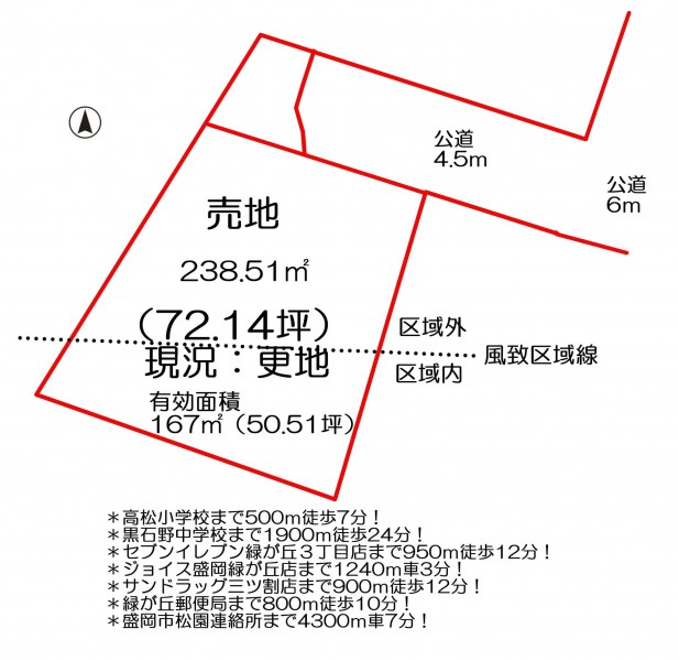 | 備考 | 有効面積167㎡50.51坪、高松風致地区第3種地区に該当区画有 | ||