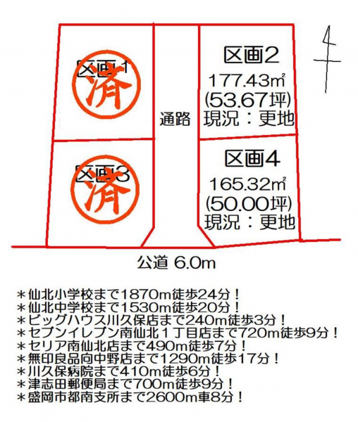 *仙北中学校まで1530m徒歩20分!