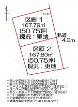 区画①167.79㎡ 50.75坪 1,400万円 上水道20mm、位置指定道路(私道)通行・掘削承諾書有 |