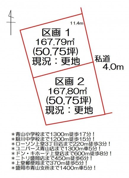 | 小学校区 | 青山 ( 1300m ) | 中学校区 | 厨川 ( 1200m ) |