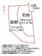 土地2筆(宅地:201.07坪 原野:221.12坪) 原野部分はほぼのり面で市街化調整区域に該当します。 上物有1979年昭和54年1月築・木造2階建・7DK |