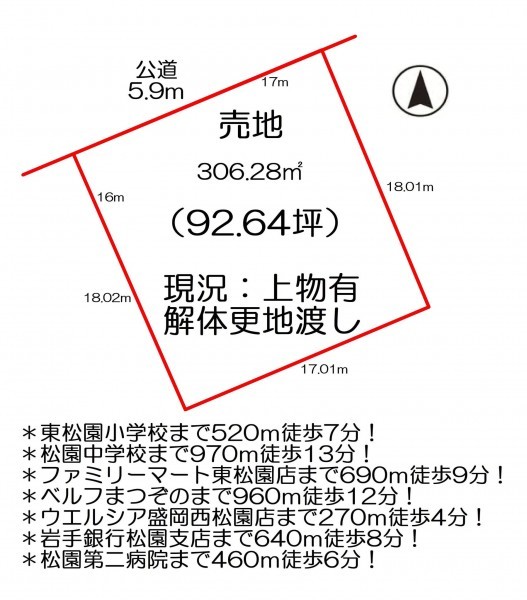 土地面積 | 公簿 306.28㎡(92.64坪) |