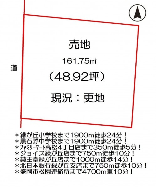 | 小学校区 | 緑が丘 ( 1900m ) | 中学校区 | 黒石野 ( 1900m ) |