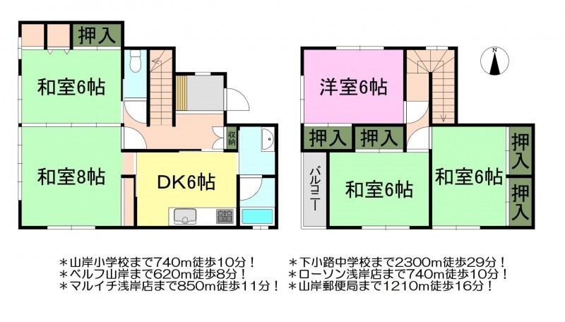 | 小学校区 | 山岸 ( 740m ) | 中学校区 | 下小路 ( 2300m ) |