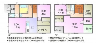 | 設備・条件 | システムキッチン、IHクッキングヒーター、オール電化、洗浄便座、追い焚き、駐車場3台分、トイレ2箇所、2口コンロ、全居室収納、クローゼット、ダブルロックドア、省エネ給湯器、照明器具、火災警報器(報知機) | ||