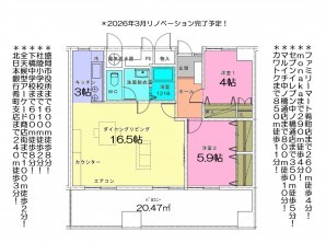 常時ゴミ出し可能、外観タイル張り、来客用駐車場、駐輪場、バイク置場 2024年6月各戸給排水管洗浄 2026年3月リノベーション完了予定 システムキッチン・ユニットバス・温水洗浄便座トイレ・洗面化粧台・給湯器・建具・クローゼット・シューズボックス・照明LED交換、防音フロアー・クロス・ベランダ芝生張替、エアコン1台設置、和室→洋室、3DK→2LDKに間取り変更、クリーニング等 |