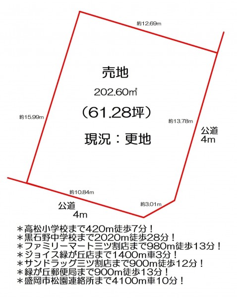 | 小学校区 | 高松 ( 500m ) | 中学校区 | 黒石野 ( 2230m ) |
