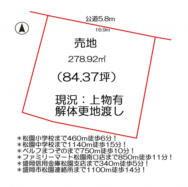 | 所在地 | 盛岡市松園3丁目 | 価格 | 850万円 |