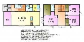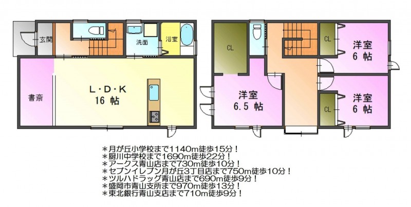| 小学校区 | 月が丘 ( 1140m ) | 中学校区 | 厨川 ( 1690m ) |